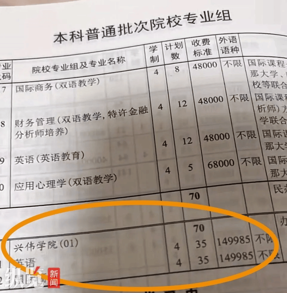 7月2日上午,記者以考生家長身份聯系了上海興偉學院招生辦,工作人員向記者介紹,該校學費的確是149985元/年,之所以如此收費是因為英語專業有一個海上游學項目,需要在海上完成一個學期的學業,大概在海上要“漂”一百多天,期間會停靠十多個國家。主要是給學生提供一個純語言的鍛煉環境。該項目學生繳納的每年14多萬元的學費其實遠遠不夠,學校還需要再補貼20多萬元。國際商務專業則是在大二學期,安排學生組建一個十至十五人的團隊,真實地去運營、管理一個公司,把國際商務的理論知識運用到實踐當中。國際商務專業還有三次研學,分別是大二在國內研學7天、大三在歐洲研學21天、大四是全世界任選一個國家研學21天。這些費用支出由學生管理的公司的盈利加上學校的補貼。
