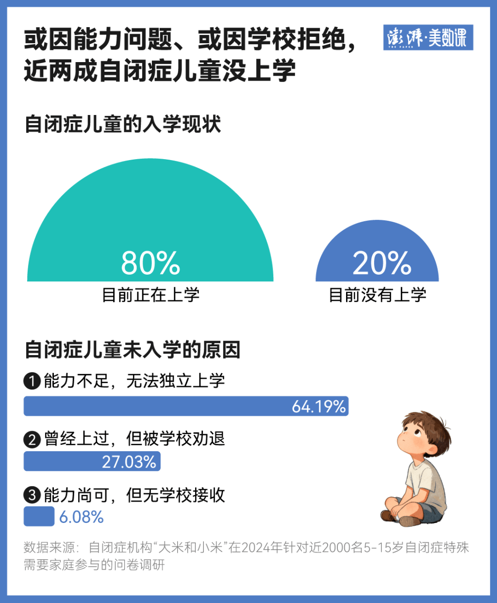 2024年,一份近2000名孩子5-15歲的特殊需要家庭參與的問卷調研披露了目前自閉癥兒童就學的現狀。