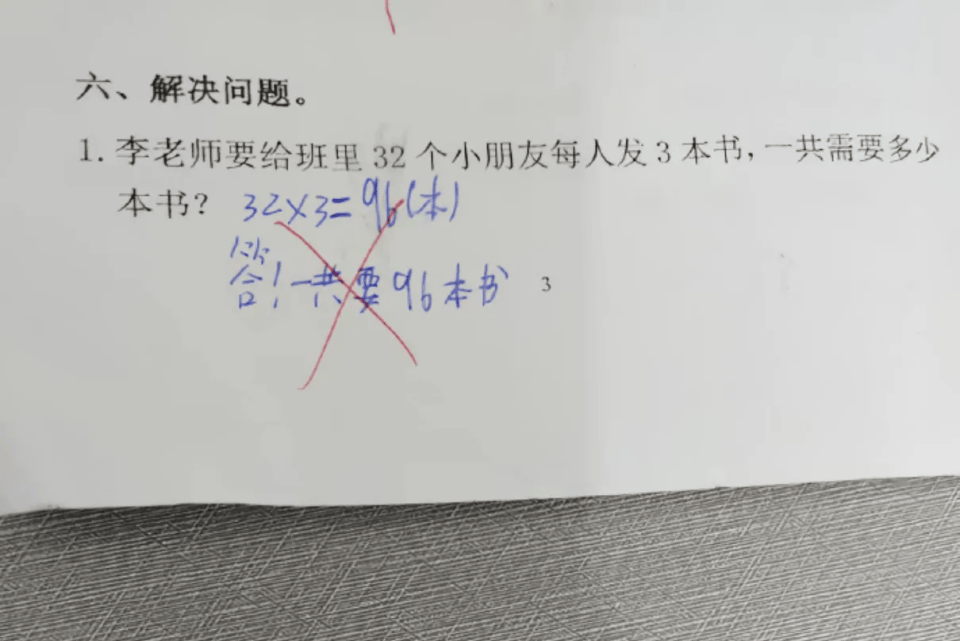 近日,一道小學(xué)二年級數(shù)學(xué)題引發(fā)社會熱議:題目要求計算“3個盤子,每盤8個水果”的總水果數(shù)。一名學(xué)生列式計算為“3×8=24”,卻被老師判錯,理由是“正確列式應(yīng)為8×3”。