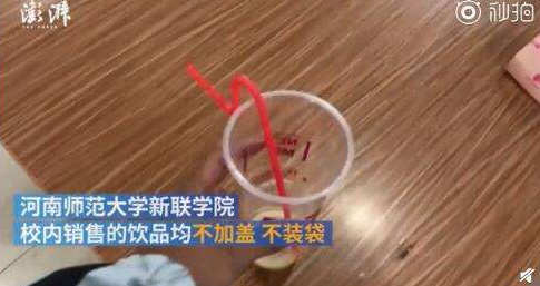 近日,河南鄭州某高校校內賣的所有飲品都不許加蓋,不許裝袋,店員稱這是學校規定,已實施3年。校方回應,此舉是為校園環境考慮,減少塑料垃圾,防止學生外帶亂扔。(澎湃新聞網)