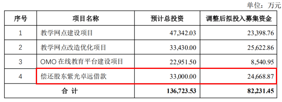 到2021年3月16日,紫光學(xué)大發(fā)布《非公開(kāi)發(fā)行股票發(fā)行情況報(bào)告書暨上市公告書》,宣告定向增發(fā)成功,最終募資金額募集金額為8.22億元,在募資用途中,有近2.5億元是償還借款。