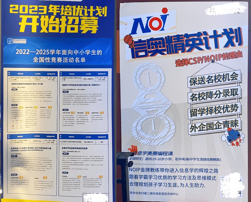 雖然教育部在關(guān)于公布該文件的通知中,明確表示“競賽以及競賽產(chǎn)生的結(jié)果不得作為中小學(xué)招生入學(xué)的依據(jù)和高考加分項(xiàng)目”,但教培機(jī)構(gòu)門口不乏競賽升學(xué)的暗示。