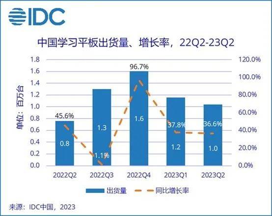 根據IDC發布的學習平板季度跟蹤報告顯示,2023年第二季度,中國學習平板市場出貨量約103萬臺,同比增長36.6%;上半年出貨量約220萬臺,同比增長37.2%。市場機構洛圖科技(RUNTO)的數據顯示,上半年,中國學習平板線上公開零售市場(不含抖音、快手等內容電商)的銷量為50萬臺,同比增長14.6%;銷售額15.4億元,同比增長67.4%。學習平板市場的增長較為明顯,市場并不蕭條。