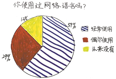 兒童調研員的年齡段為10——14歲,他們把問卷發到同齡人手中,調研從2018年7月持續至9月,共發放調查問卷 1543份,有效問卷1428份。從兒童調研員統計的數據來看,大部分的兒童都使用過網絡語言,有59%的兒童表示經常使用。