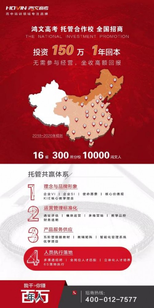 未來三年內(nèi),李文龍董事長表示,鴻文高考將繼續(xù)拓展校區(qū)至山東、山西、河南、河北、陜西、四川、江蘇、安徽、湖北、寧夏、甘肅等省市,實(shí)現(xiàn)國內(nèi)全面布局,為更多高中學(xué)子筑夢,引領(lǐng)更多投資伙伴做最有價值的投資。