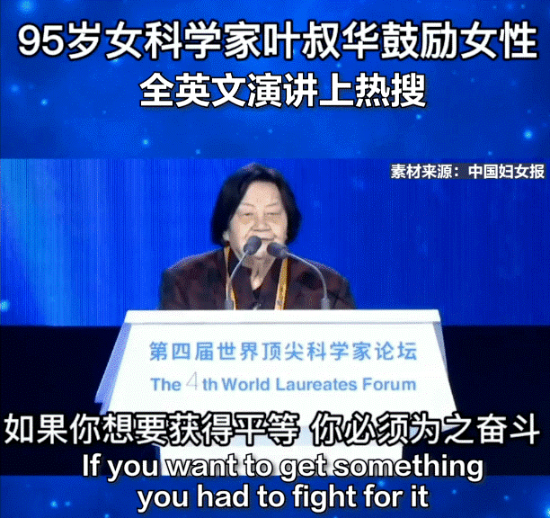 “如果你想要獲得平等,你必須為之奮斗。你要展示你的能力,要努力工作,兢兢業(yè)業(yè)。“葉叔華相信,只要女性努力做到更好,女性的地位會(huì)越來(lái)越高。