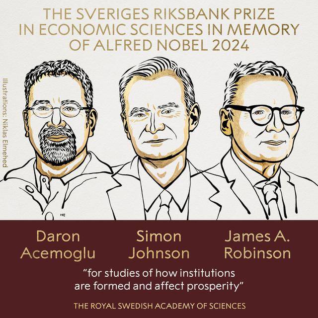 當(dāng)?shù)貢r(shí)間10月14日,瑞典皇家科學(xué)院宣布,將2024年諾貝爾經(jīng)濟(jì)學(xué)獎(jiǎng)授予達(dá)龍·阿西莫格魯、西蒙·約翰遜和詹姆斯·A·羅賓遜。