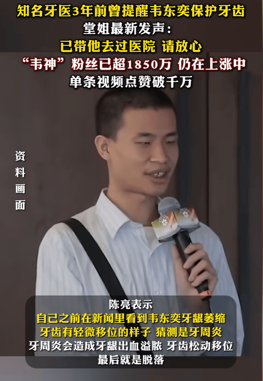 原標(biāo)題:韋神粉絲破 1850 萬!牙醫(yī) 3 年前預(yù)警成真,堂姐:已帶他看醫(yī)生