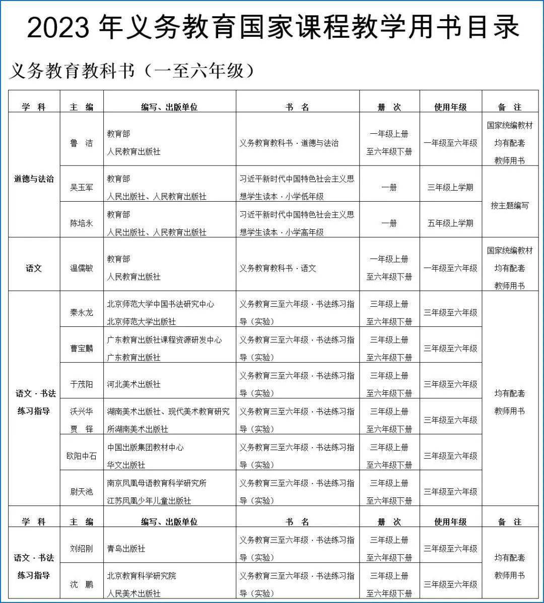 2023年義務教育國家課程教學用書目錄(部分)