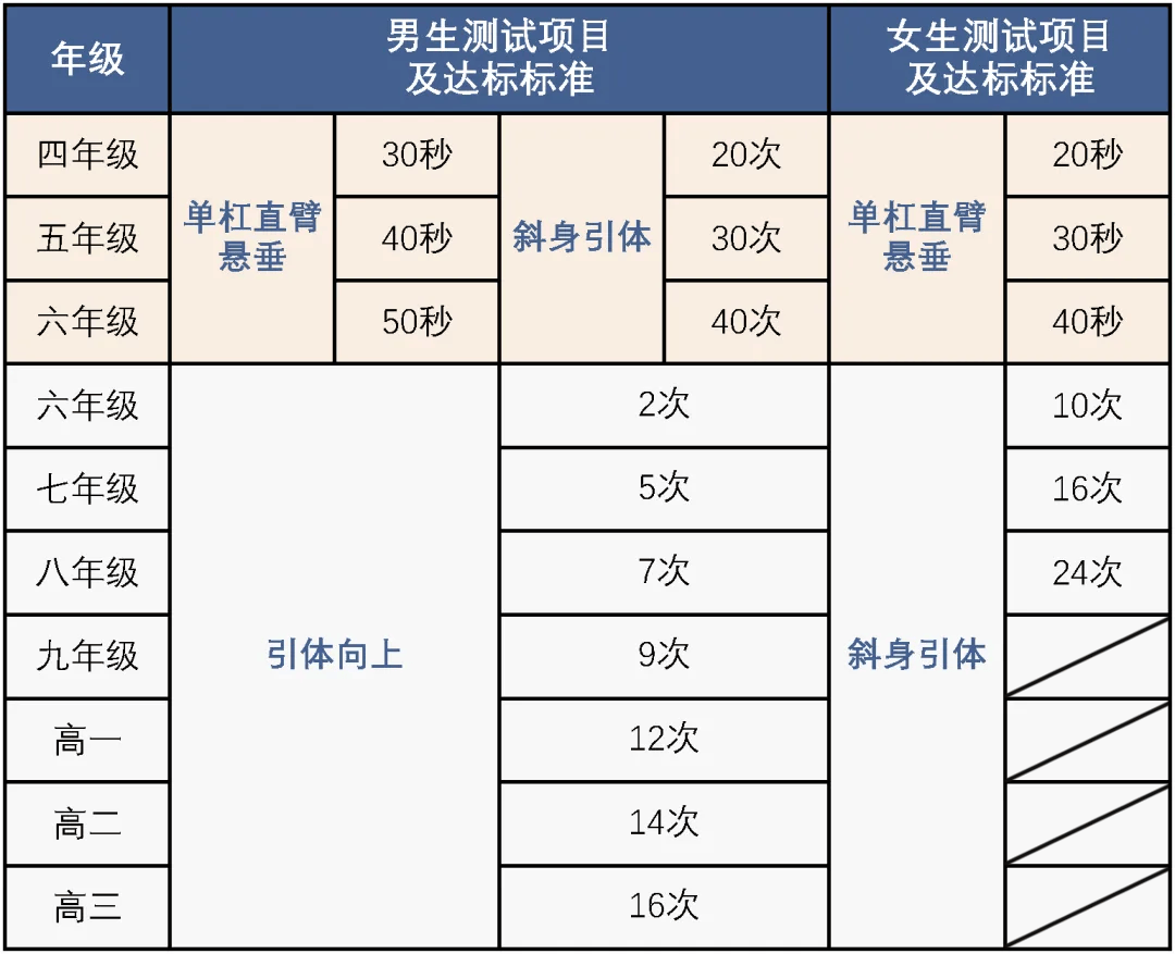 為有效提升學生上肢力量,結合本市學生實際情況,制定不同年級鍛煉標準,請參照執行。