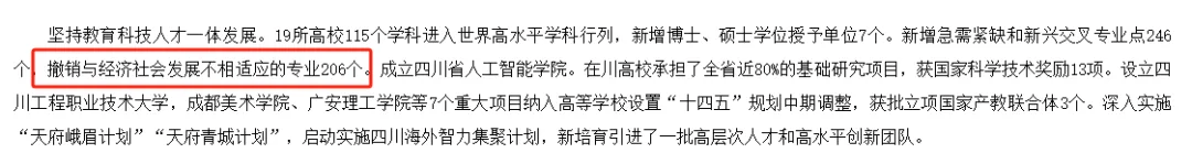 如四川省過去一年新增急需緊缺和新興交叉專業點246個,撤銷與經濟社會發展不相適應的專業206個;重慶近兩年撤銷淘汰專業點40個;黑龍江省本科專業調整比例提前一年超過國家目標。