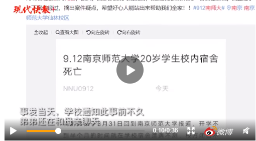 9月12日,南京師范大學2018級學生劉某辰在宿舍死亡,額頭、面部都發現傷口,死因暫時不明.死者哥哥@中老年人劉先生 回應未做尸檢原因,他稱家屬曾在16日申請過尸檢,當時法醫稱做完尸檢不能確定死者的傷口是如何造成的,還需要把內臟器官全部拿出,因此沒有做.目前,公安部門仍在進一步調查之中.