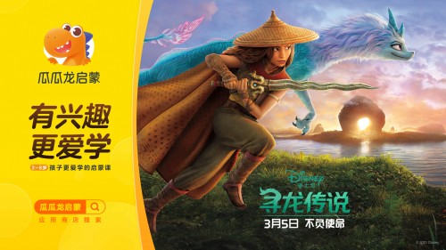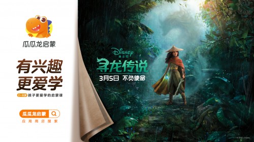 2021年3月5日,迪士尼 奇幻、冒險力作《尋龍傳說》將在國內上映。影片由《冰雪奇緣》、《瘋狂動物城》原班人馬打造,備受觀眾期待。大力教育旗下Pre-K教育產品“瓜瓜龍啟蒙”與影片開展合作,讓更多家長陪伴孩子們一起追尋愛、勇氣和想象力。