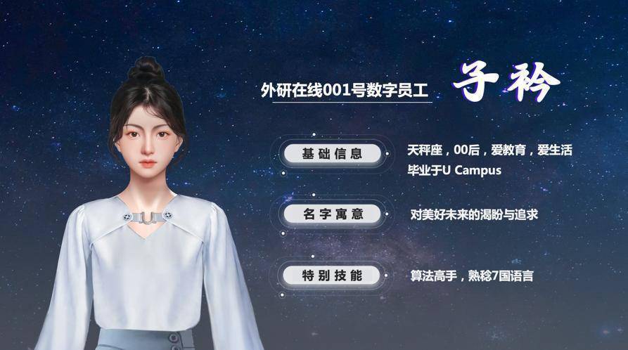 2022年10月21日,一位“身份特殊”的姑娘亮相外研在線8周年司慶,并正式入職北京外研在線數(shù)字科技有限公司。她叫子衿,是外研在線首位虛擬數(shù)字員工。