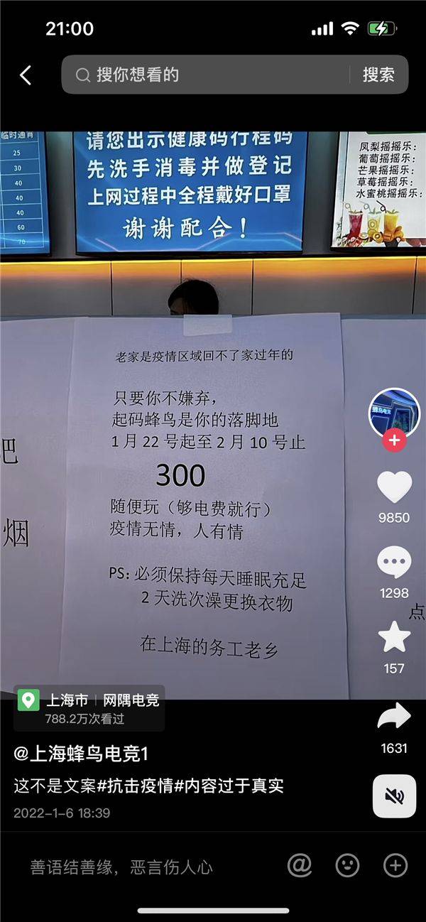 另一個“蜂鳥”網(wǎng)吧也發(fā)視頻曬出了促銷活動,1月22日至2月10日,同樣是20天300元。不過要求玩家必須保持每天充足的睡眠,另外2天洗次澡更換衣物。