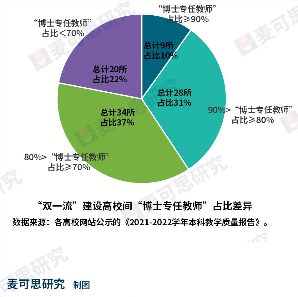 選擇轉去教學科研崗是一些行政人員為了找到職業生涯突破口的方法,但是不少高校將“博士學歷”作為硬指標成了主要阻礙之一。當前,高校教師“博士化”程度越來越高,我們統計了各“雙一流”建設高校《2021—2022學年本科教學質量報告》博士專任教師數據發現,91所“雙一流”高校博士專任教師占比均值高達75.81%。博士專任教師占比超九成的有9所,位于八成和九成之間的有28所。