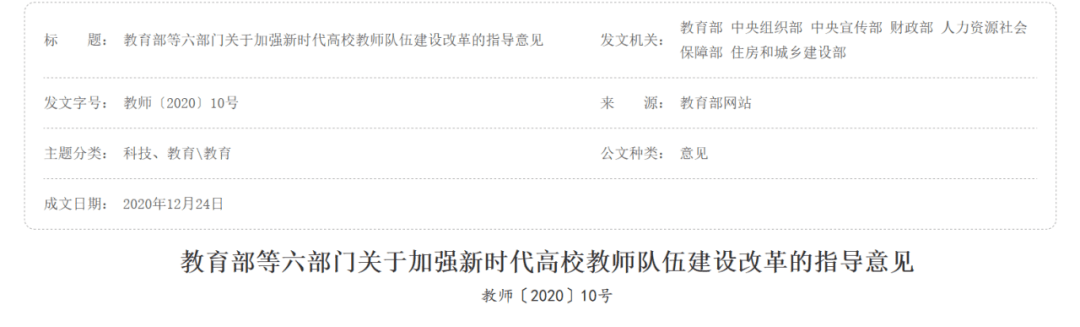 2020年12月,教育部等六部門聯合印發《關于加強新時代高校教師隊伍建設改革的指導意見》,強調加快高校教師編制崗位管理改革,提出高校可采取多元化聘用方式自主靈活用人,實施崗位聘期制管理,進一步探索準聘與長聘相結合等管理方式,落實并完善能上能下能進能出的聘用機制。