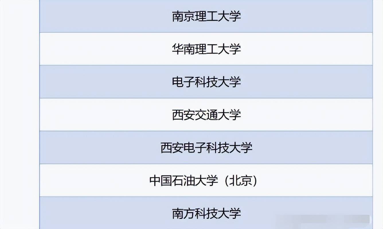 江蘇省內(nèi)有2所高校入選,分別是南京航空航天大學(xué)和南京理工大學(xué),西安也是有2所高校出現(xiàn)在其中,是西安交通大學(xué)和西安電子科技大學(xué),華南理工大學(xué)和電子科技大學(xué)也在其中。
