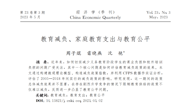 最近,北京大學三位老師聯合發表的教育論文《教育減負、 家庭教育支出與教育公平》在網上熱傳。