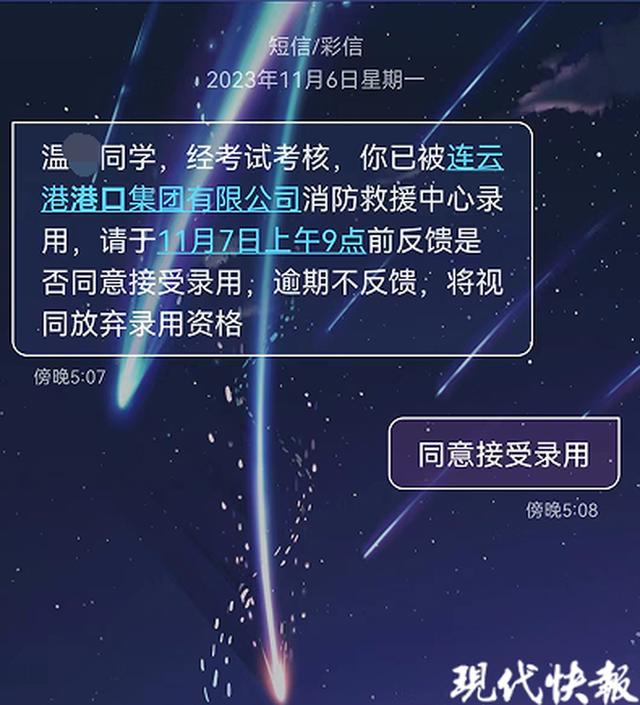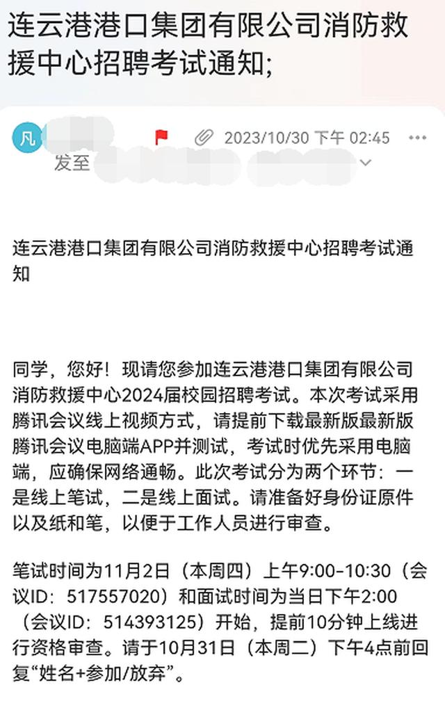 21歲的小溫是泰州學(xué)院大四學(xué)生。2023年9月,小溫在網(wǎng)上看到連云港港口集團(tuán)發(fā)布的2024年度招聘公告后就報(bào)了名。