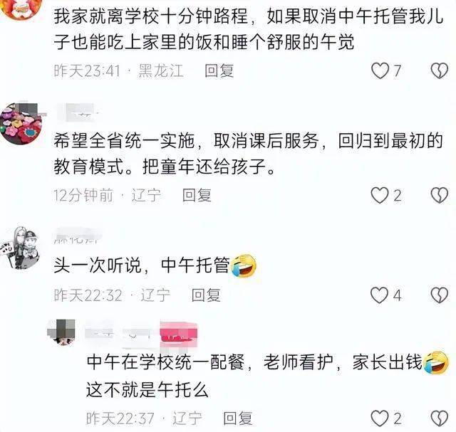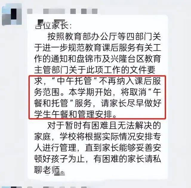 上學期臨近期末時,教育部門印發進一步規范課后服務工作的通知。通知明確表示,不得將午托和晚自習納入課后服務時間,更不能以此向家長索取托管費用。本學期開學前夕,多地家長就接到了學校的通知,不光取消了午休的托管服務,學校連午飯都不提供了?