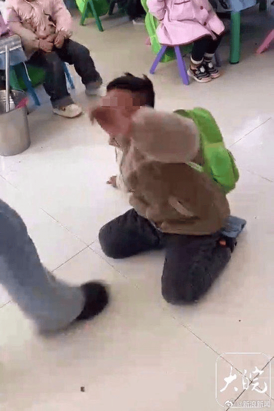 多段視頻顯示,一名身穿黑色衣服的女子對著一名身穿咖色衣服背著綠色書包的男童頭部不停拍打,還試圖脫男童褲子,但男童抗拒,用手緊緊地拽住褲子,并喊著“不要”。視頻結尾該女子用腳踩著男童臉部,該男童不住地說著“對不起”。另一段視頻中,該男童跪在地上,向一名身穿深藍色上衣的女子跪拜,視頻中傳來女子的笑聲。