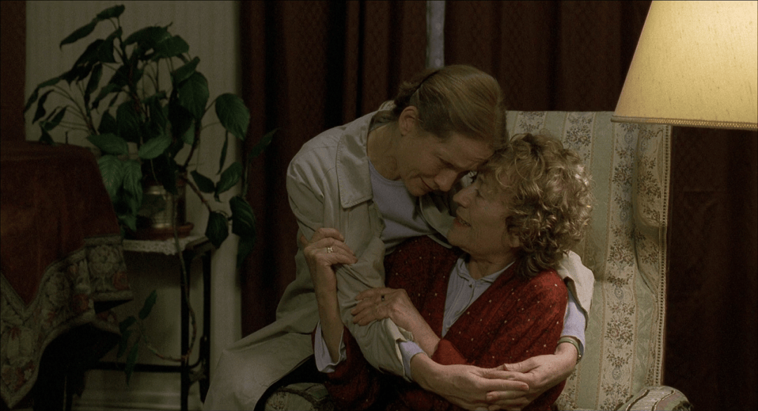 精神一直不太好、老年癡呆的父親也被送進了療養院,不過父親似乎沒有什么離開家的痛苦,因為母親早就禁止父親從事很多活動,覺得他做什么都是錯的。父親或許才是強勢母親的第一個受害者,因為當母女倆把父親送到養老院,準備離開的時候,護士讓父親揮手向家人告別,父親沒有揮手,而是用手遮住臉,哀求母親不要打他。