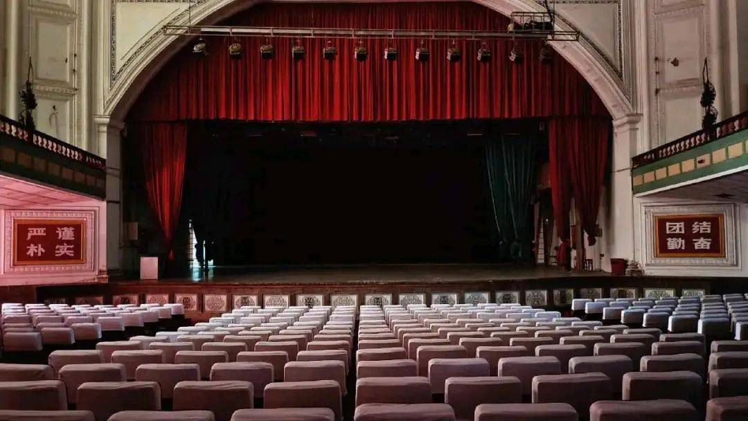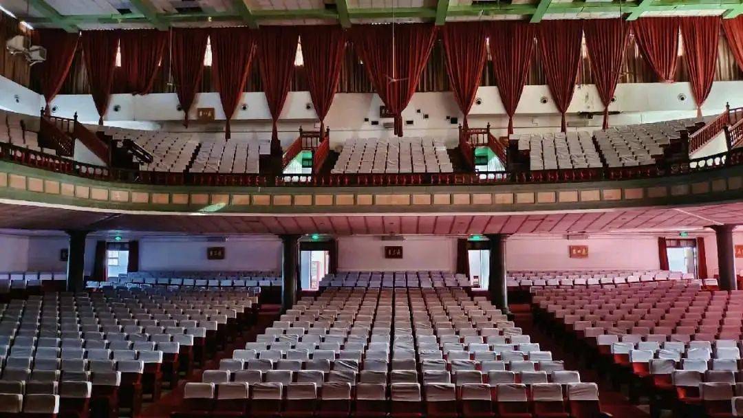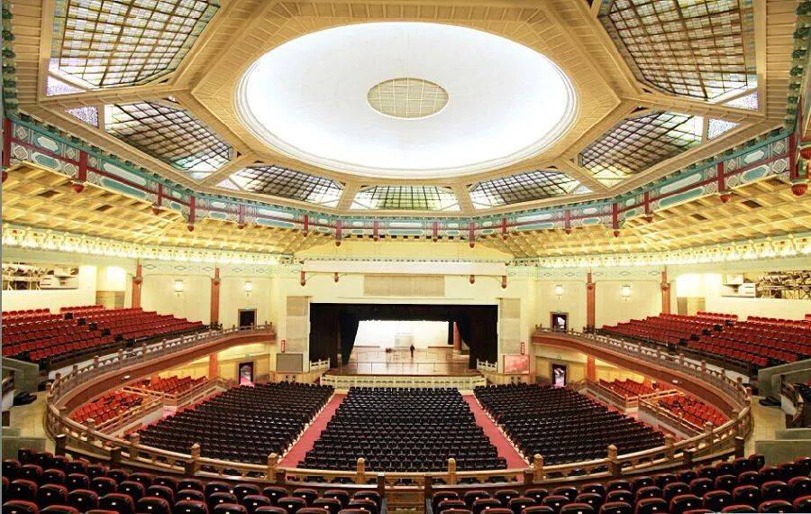建筑平面按功能將門廳、觀眾廳、舞臺三部分沿南北中軸線分布,看臺分池座、樓座上下兩層,有觀眾席2816個。