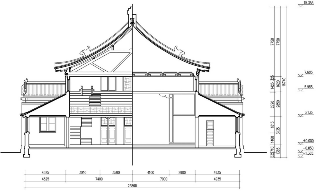 該建筑南北長73.75米,東西寬53.75米,高24.4米,占地3932平米,總建筑面積4687平方米。