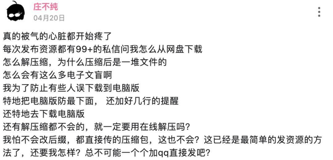 他此前就有考慮到網(wǎng)友電腦水平的問(wèn)題,于是盡可能簡(jiǎn)化了下載流程,只需要從網(wǎng)盤(pán)內(nèi)下載好,再到文件夾里解壓即可,不需要經(jīng)歷分卷解壓、改文件后綴名、輸入解壓密碼等更復(fù)雜的操作。