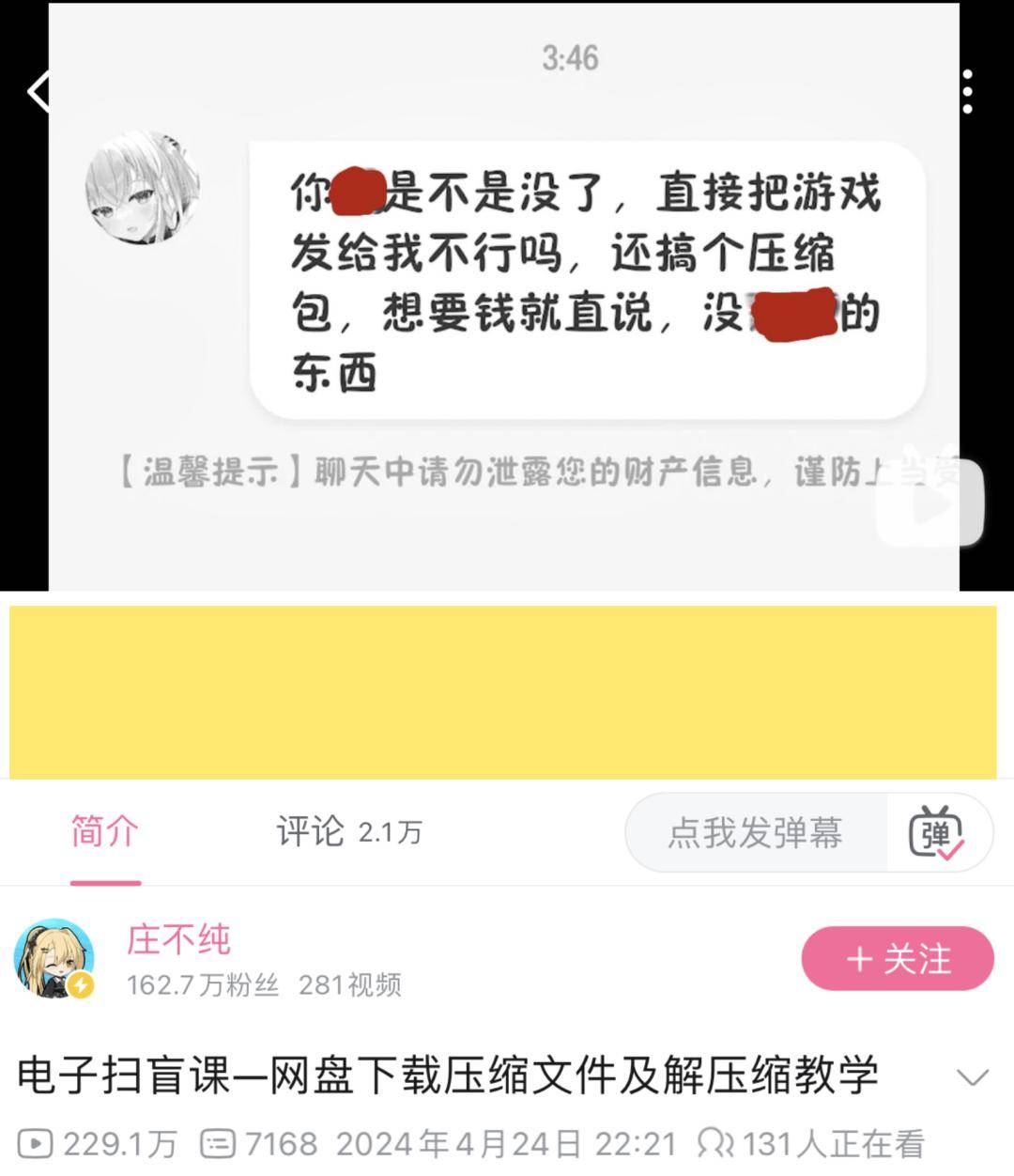 這個(gè)叫「莊不純」的up主經(jīng)常會(huì)自制一些游戲mod,并以壓縮包的形式生成鏈接供人免費(fèi)下載,結(jié)果每次都會(huì)收到來(lái)自評(píng)論區(qū)和私信的國(guó)罵。