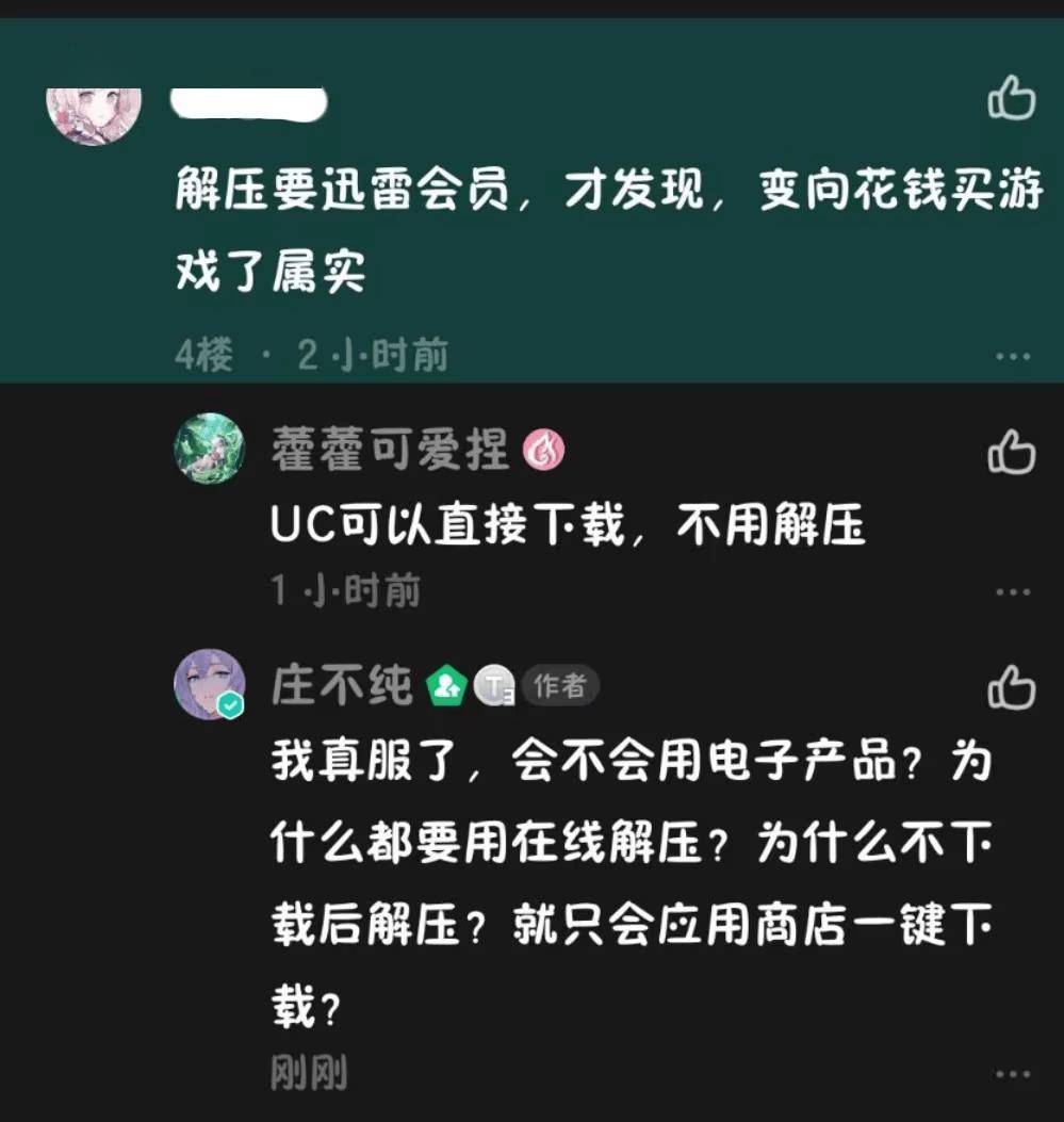 對(duì)方生氣的理由不是游戲質(zhì)量如何如何,而是不會(huì)下載、不懂解壓縮、不知道手機(jī)不能安裝電腦端的軟件……