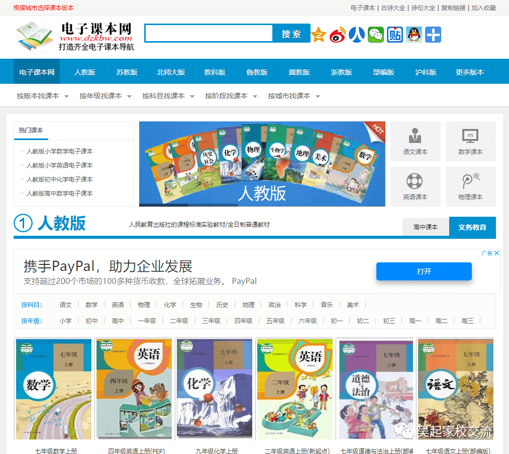教材資源包括小學、初中、高中的電子版教材和學習資源。
