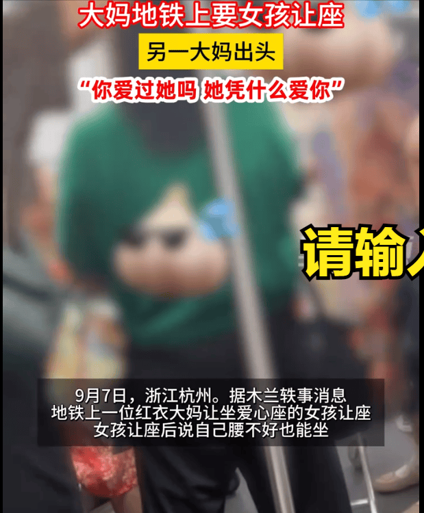 在杭州的一列地鐵上,發(fā)生了一起引人注目的爭執(zhí)。一位紅衣大媽要求坐在愛心座上的年輕女子讓座,一直說要女子尊老愛幼,女子給她讓座后,紅衣大媽還一直喋喋不休說什么“這是愛心座啦,讓你起來你就得起來!”女子聽后也覺得委屈說:自己腰不好也可以做。旁邊的紫衣大媽看不下去了,就說紅衣大媽倚老賣老等等,紅衣大媽也不示弱,叫囂著有本事你打我啊!紫衣大媽哪能慣著她,雙方拉扯起來,紅衣大媽順勢倒地,哇哇大哭!