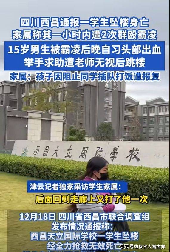 非常痛心!西昌天立國際學校一學生墜亡。當地通報,排除刑案可能,但學生家長并不買賬,透露了更多細節。