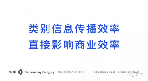 正是基于類別化認知的研究結論,王政東認為在①商業行為成敗和②有效信息的傳遞上,類別起到了決定性作用。大部分生意的失敗,是因為對類別的忽略,如果不能準確定類、明確定類,就不能準確找到產品與消費者之間的基本供需關系,也不能準確傳播有效的信息,以致于在消費者認知過程中產生障礙,信息傳播效率下降,最終將影響整體商業效率。