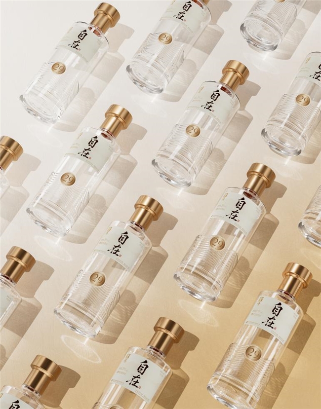 其三,包裝超預期。舍得自在的高透水紋瓶身設計摒棄繁復,以通透質感契合“輕盈”特質,立體水紋呼應“水利萬物”的東方智慧,兼具新中式東方韻味與極簡現代風格;同時醒目的29度金色標識、“自在”二字的墨跡飛白,傳達“低酒度無壓力”產品特性,降低消費者對飲用白酒的心理門檻。
