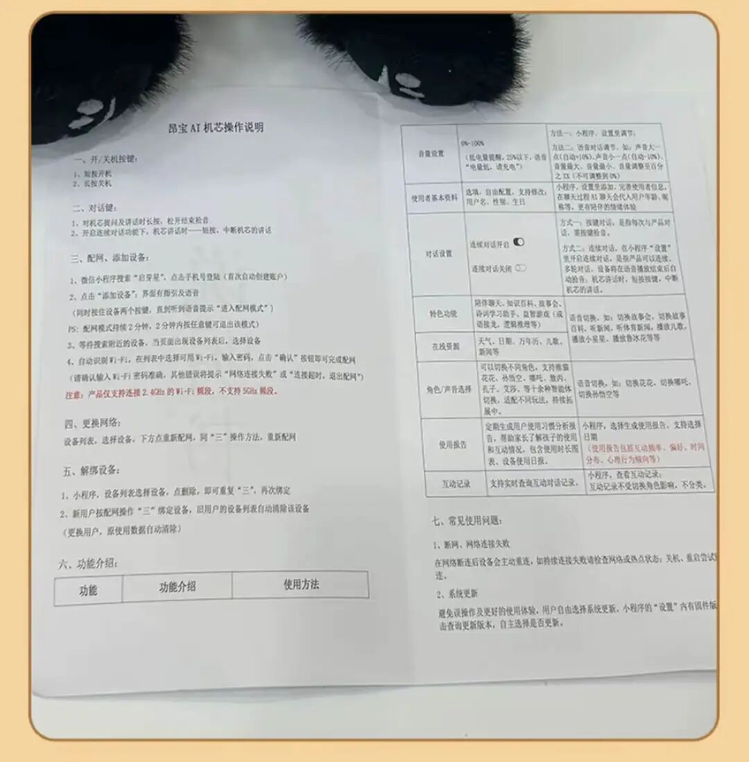 整理發(fā)現(xiàn),AI花花官方名稱為“AI智能花花”,使用了小熊貓的毛絨外觀和內(nèi)嵌AI機(jī)芯,整體大小在27cm上下。