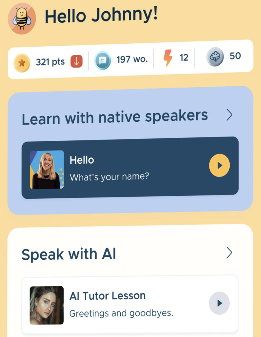 BeeSpeaker 內部制作內容,專注于沉浸式互動形式。學習者可以通過母語人士的短視頻和模擬真實情境(例如點餐或求職面試)的對話提示進行練習。高級用戶可以進行自由形式的人工智能對話,而初學者則可以跟隨結構化的視頻課程。該公司很早就采用了人工智能技術,目前正在測試AI生成的視頻導師,以擴大內容制作的規模。