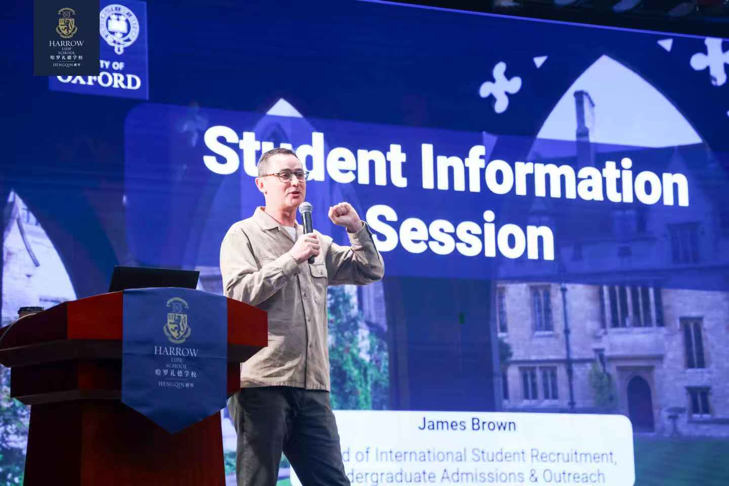 10月21日,哈羅橫琴舉辦了“牛津大學(xué)國際學(xué)生招生專題講座”。本次主講嘉賓James Brown先生——牛津大學(xué)國際學(xué)生招生辦公室主任,親自從英國來到現(xiàn)場,直接與在校師生與家長面對面對話。Brown先生詳細解析牛津大學(xué)的本科申請流程、評審標準與錄取機制,幫助哈羅家庭更好地規(guī)劃升學(xué)路徑,鼓勵同學(xué)們向世界頂尖學(xué)府發(fā)起沖刺。