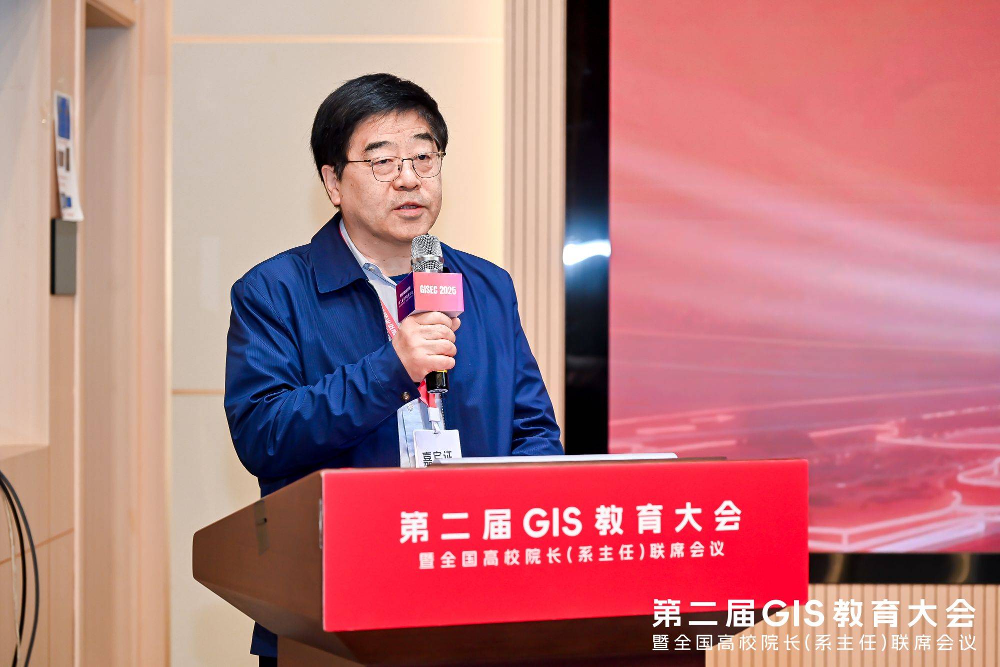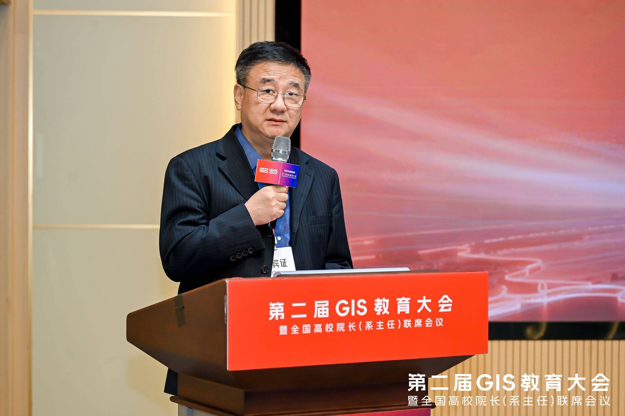 教育部高等學校地理科學類專業教學指導委員會副主任、南京師范大學湯國安教授在會上致辭。他談到,GIS作為空間認知與數字技術融合的學科,不僅重塑了地理學的范式,更成為推動社會數字化轉型的關鍵力量,這一成就源于一代代GIS教育工作者對“立德樹人”根本任務的堅守,對“產教融合”育人路徑的探索,對“學科創新”核心目標的追求。針對當前GIS教育面臨的時代命題,他提出以“三個貫通”破題:貫通基礎理論與前沿技術,夯實地理核心理論并融入AI、物聯網等課程,構建“厚基礎、強交叉”的課程體系;貫通課堂教學與實踐創新,依托產學研平臺讓學生在項目中培養“從數據到決策”全鏈條能力;貫通國際視野與本土情懷,引入全球GIS資源的同時立足國情,培養兼具全球治理能力與服務國家戰略擔當的人才。