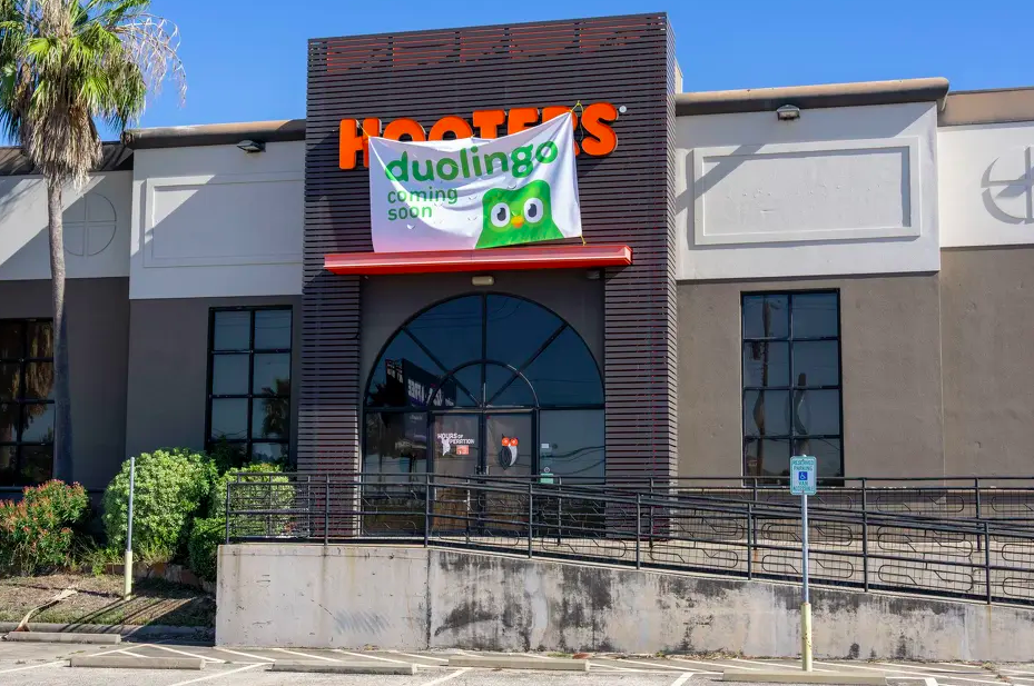 12月11日消息,據(jù)《休斯敦紀(jì)事報(bào)》(Houston Chronicle)消息,上周末,在美國(guó)德克薩斯州東南部的加爾維斯頓(Galveston),一家已關(guān)門的Hooters餐廳(貓頭鷹餐廳,一家連鎖西餐廳品牌,以貓頭鷹為吉祥物,今年早些時(shí)候,Hooters餐廳已關(guān)閉多家門店)外掛起了一塊“多鄰國(guó)即將開(kāi)業(yè)”(duolingo coming soon)的牌子,牌子上還印有多鄰國(guó)的吉祥物多兒(Duo)。