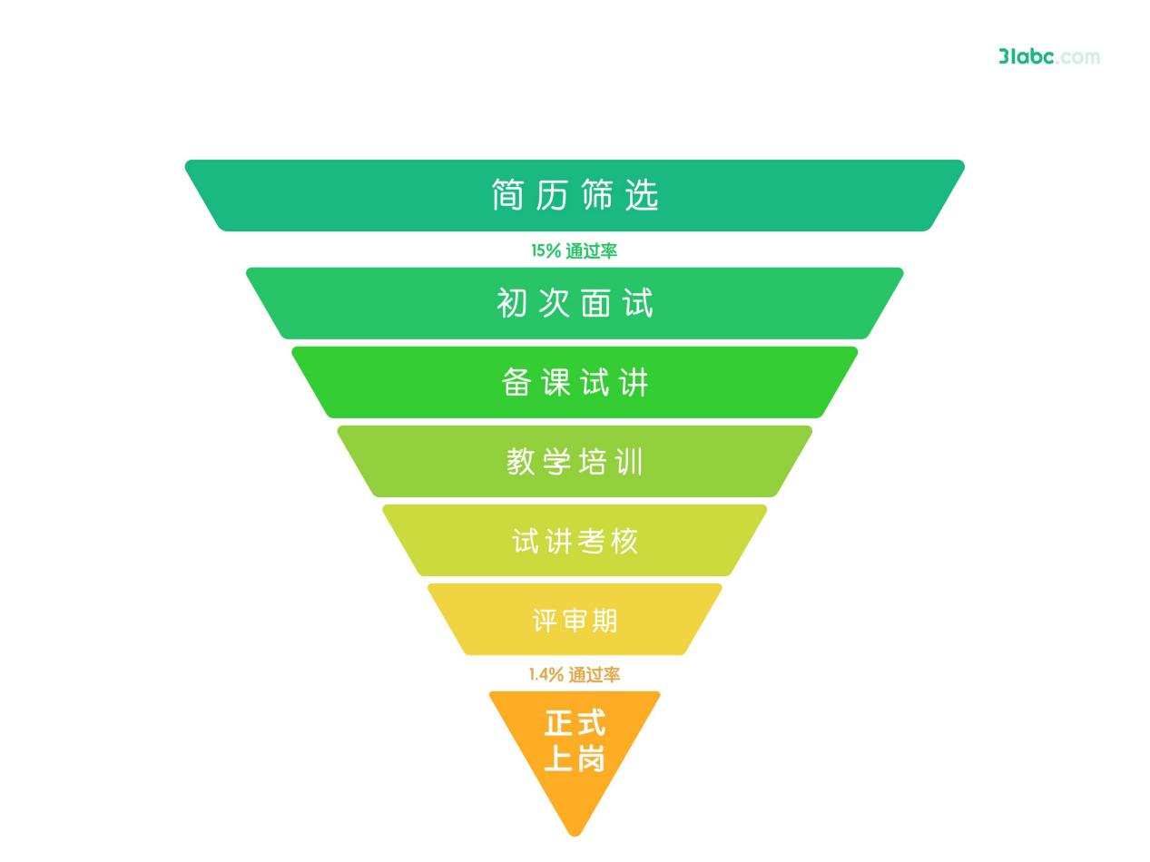 31abc創始人何輝將“721原則”作為不斷提升課堂質量的出發點。在他看來,一節優質的在線口語課堂,70%取決于外教,20%取決于專業課件,10%取決于優質平臺。因此,31abc在選拔、培訓、考核等各個環節中都對外教師資水平進行嚴格把控,直擊用戶痛點。在篩選錄用方面,31abc采用超高錄用標準,進行多達七層嚴格篩選,確保每位外教來自北美國家,語音純正;確保外教持有國際權威認可的英語教師資格證書,以及多年的豐富教學經驗,最終錄取率低于1.4%。