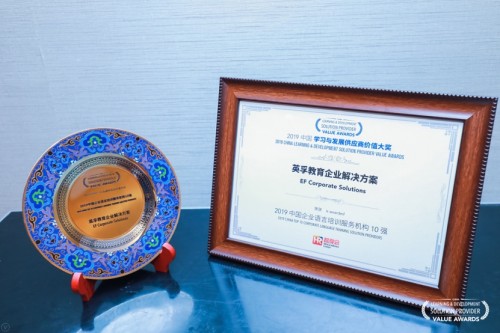 (2019年7月10日,北京)近日,由人力資源智享會(HREC)主辦的“2019中國學習與發展供應商價值大獎”頒獎典禮上,英孚教育獲得“中國企業語言培訓服務機構十強”的稱號。這已是英孚自2017年以來,第三次獲此殊榮。