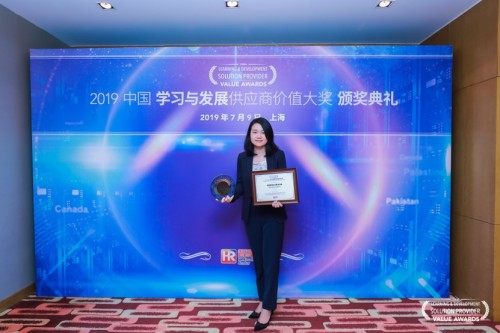 英孚企業解決方案市場營銷總監劉天虹女士,代表英孚領取了獎牌與獎狀。她表示:“英孚在過去幾年來一直兢兢業業、努力不懈地為各大企業和組織的人力資源及學習發展部門和學員們提供最專業的服務,能再次獲此殊榮,給予了公司同仁極大的鼓舞。”