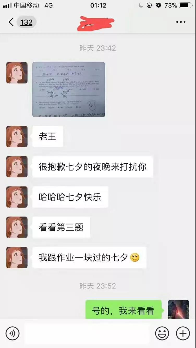 ▲ 課后老王在微信上指導學生解題