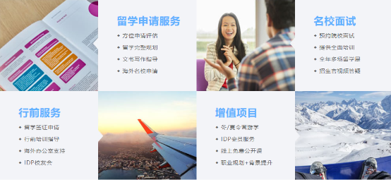 50年匠心國際教育:作為成立已經50年的全球領先留學服務機構之一,IDP教育一方面為中國學子挖掘全球最優質的教育資源,幫助同學們提升全球競爭力;另一方面提供360°一站式服務,全方位增加學生申請籌碼。